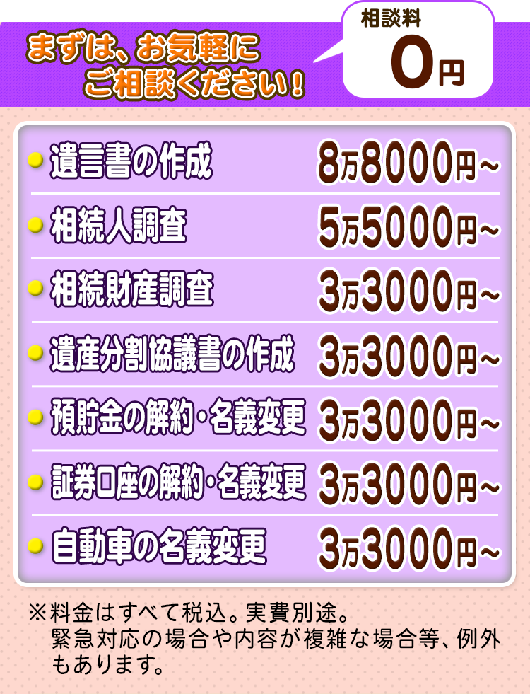 複数の相続手続きをご依頼いただくこともできますし、何か一つだけ依頼するということも可能です。